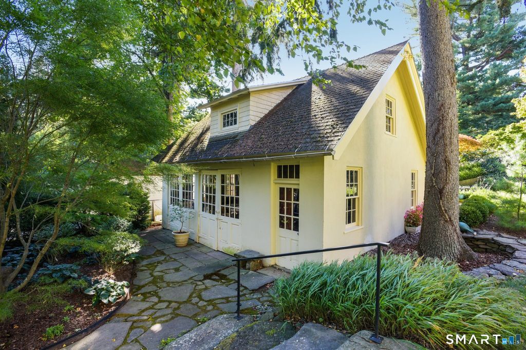 This outstanding condition Arts and Crafts treasure is located on one of East Rock's premier streets. Impeccable landscaping leads to a delightful front porch. The spacious entry foyer has spectacular woodwork, arched openings, and columns. A cozy library with bookcases has a handsome fireplace. The living room has 3 exposures, is filled with light and has a fireplace and built-ins. The charming study has glass French doors and is a perfect workspace. The gracious dining room is ideal for entertaining. A pantry leads to a cook's dream kitchen which boasts incredible work and storage space, a glass door to a lovely deck overlooking the garden, and room for a table and even a couch! A graceful staircase leads to the second floor. The primary bedroom offers a calming respite. It offers a fireplace, a sweet window seat, and en-suite bathroom. 3 additional bedrooms and 2 more baths are on this level. A finished 3rd floor has 2 more bedrooms and a kitchenette. It's a great space for guests, an au pair, or teenagers. A large family room, stunning office, and full bath are in the above grade lower level. The magnificent rear garden has mature trees and plantings, secret pathways, a koi pond, and a two-car garage. The house has great beauty and distinctive architectural features, yet it feels comfortable and inviting. Almost every room has unsurpassed views of East Rock. The ideal location is close to Yale and town, East Rock and Edgerton Park and is steps away from many schools.