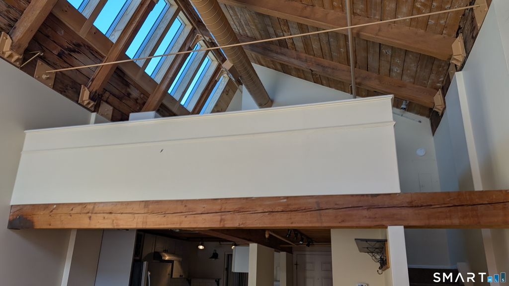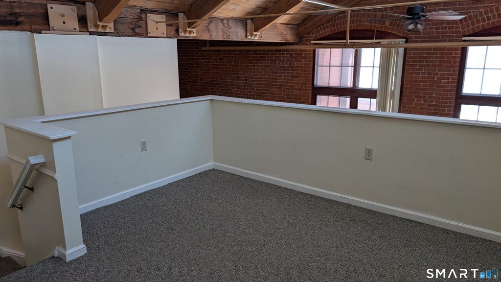 This unique one-bedroom loft offers the perfect blend of Industrial charm and modern charm. The living/dining area is 32x12, with a soaring ceiling, large windows and exposed brick. The kitchen has been updated with granite counter tops and a farm sink. Also on the main floor is a half bath. The upstairs loft bedroom offers plenty of light with an abundance of skylights. There is also a full bath and laundry located upstairs in the bedroom area. This is a end unit in a secured building, this unit is close to the elevator. There is also a gym and laundry in the complex, and plenty of parking. Walk to town, close to shopping and medical facilities.
