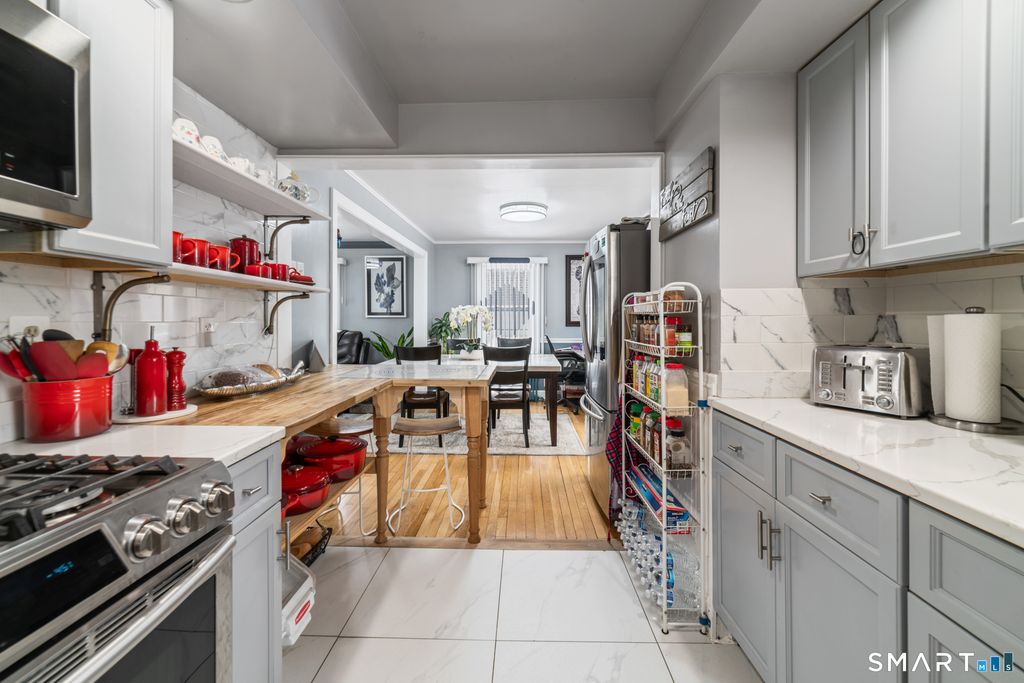 Spring is on the way! Enjoy all the warm weather has to offer in your own picturesque oasis. This meticulously maintained gem presents a rare opportunity to live in Waterbury's premier neighborhood. Close enough to be less than 10 minutes away from downtown, yet far enough to be in a quiet, heavily wooded neighborhood; there is no beating this location anywhere in the Brass City! But that's just the tip of the iceberg. The beautiful fenced backyard is a pristine piece of private heaven. No attention to detail was spared throughout the property's grounds. Apple, persimmon, pear, peach, 2 fig, 2 cherry trees and 3 blueberry bushes line the yard. The massive 20x24 ground level deck (installed in 2020) was recently updated with a pergola to provide enjoyment whether rain or shine. Solar-powered light panels line the yard to make it enjoyable at night as well. 24 Arborvitaes were planted in 2020 to line the back-yard providing even more privacy and serenity. Live outside while the weather permits but when it's time to come inside you won't be disappointed. Here you will find the same detail standard, maintenance and updates. Begining with the entryway which was retiled in 2025. Step through the spacious living room into a beautiful dining room. Next to the dining area is the Kitchen which was renovated in 2023. Kitchen renovations include a newly tiled floor and backsplash, granite countertops, cabinets, and all-new stainless steel appliances.