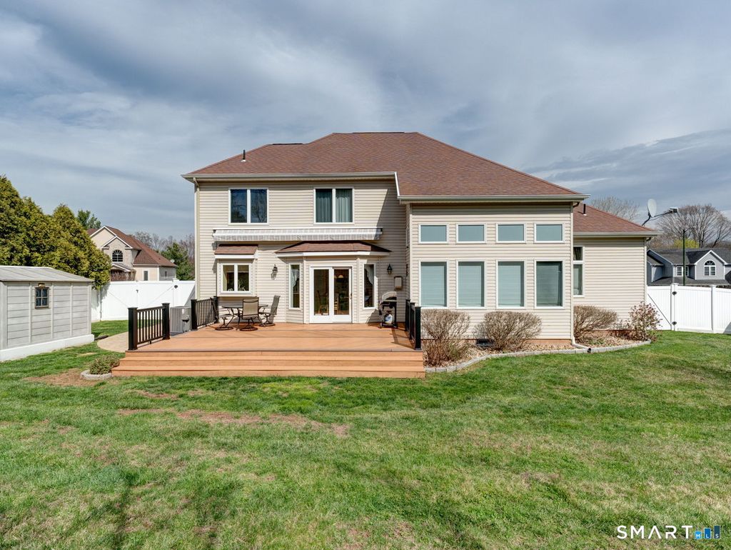 Sought after Kensington neighborhood, this Contemporary Colonial set on a cul-de-sac in an established neighborhood. Offering the perfect blend of comfort &functionality, features an open, inviting floor plan designed for both everyday living and effortless entertaining year-round. At the heart of the home is a stunning living room w/soaring two-story ceilings, gas fireplace and expansive windows that fill the space with natural light while overlooking a private, fenced backyard-perfect for pets &outdoor fun. The oversized deck extends your living space outdoors, ideal for BBQs/summer gatherings. A rarely available first-floor primary suite provides convenience and privacy featuring a full bath, walk in closet and palladium window, while 3 additional bedrooms plus full bath on the second level offer flexibility for the ever popular multigenerational living, guests, or home office needs. The well-designed mudroom with 1st floor laundry and abundant cabinetry keeps everything organized. Enjoy plenty of cabinet and counter space for the chef of the home including a pantry! Additional highlights include central air, natural gas heating and hot water, and all city utilities for ease of living. Fenced yard ideal for pets. Storage is exceptional with a full basement and walk-in attic perfect for seasonal items. This is a move-in ready home that combines space, style, and a highly desirable location-an outstanding opportunity not to be missed. Great walkable neighborhood too!