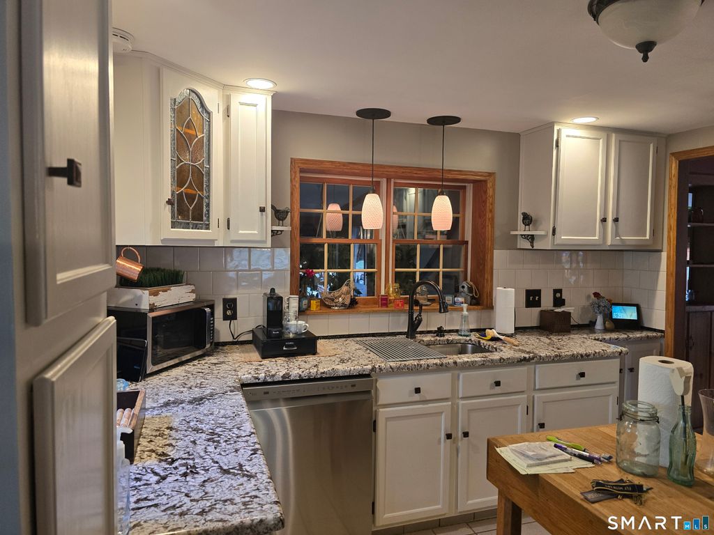 Pleased to present this charming, turn-key colonial home which offers a warm and inviting atmosphere. This three-bedroom residence features a spacious kitchen that connects seamlessly to the dining room, which is alongside a large family room highlighted by a high efficiency fieldstone fireplace. Additional features include: A four-season sunroom leading to an outdoor grilling and relaxation area. A full walk-in laundry room with ample storage. A finished lower level with half bath, providing the potential for a full bath as previously planned by the seller. Recent upgrades including a newer roof and a two-zone, high efficiency heating and cooling system. Meticulously maintained for over 20 years, this home showcases exceptional charm, complemented by a beautifully landscaped yard. Walk to town via the Greenway, dine at multiple restaurants, shop or visit Lake Quassapaug. So much to see - schedule your showing today!