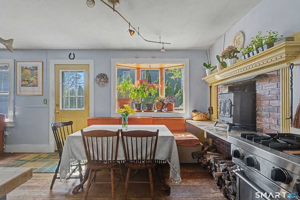 Nestled in a charming seaside village, this thoughtfully maintained coastal cottage offers an inviting blend of warmth, character, and effortless shoreline living. Just a short stroll down the street brings you to beloved Lobster Landing, with nearby public beach access and Clinton Town Beach only a five-minute bike ride away. Hammonasset Beach State Park is also within easy reach, making this an ideal setting for embracing Connecticut's coastal lifestyle, from morning beach walks to sunset kayak rides. Inside, the home welcomes you with an intimate and cozy ambiance, where natural light pours through a sun-filled bay window in the dining area. The living space is anchored by a fireplace with a wood-burning stove, creating a rich, comforting atmosphere during the cooler months. The kitchen is equipped with a Viking gas range fueled by a dedicated propane tank, offering both performance and quality for everyday cooking. Offering two bedrooms and one full bath, the layout is simple yet intentional, designed for ease of living and relaxed coastal enjoyment. The home has been well cared for over time, with key updates including a newer roof (approximately two years old), 200-amp electrical service (updated in 2005), a new water heater (2025), central air (approximately five years old), and a newer oil tank. The exterior continues to impress with a partially fenced backyard that captures beautiful sunset views, creating a peaceful backdrop for evenings at home. A one-and-